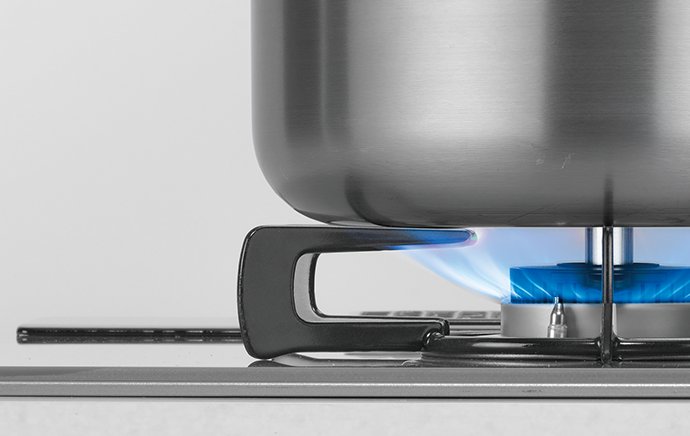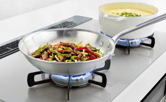 強火(3,610kcal/h)の炒め物から、トロ火の煮込み料理まで、左右どちらのバーナーでも使用可能。