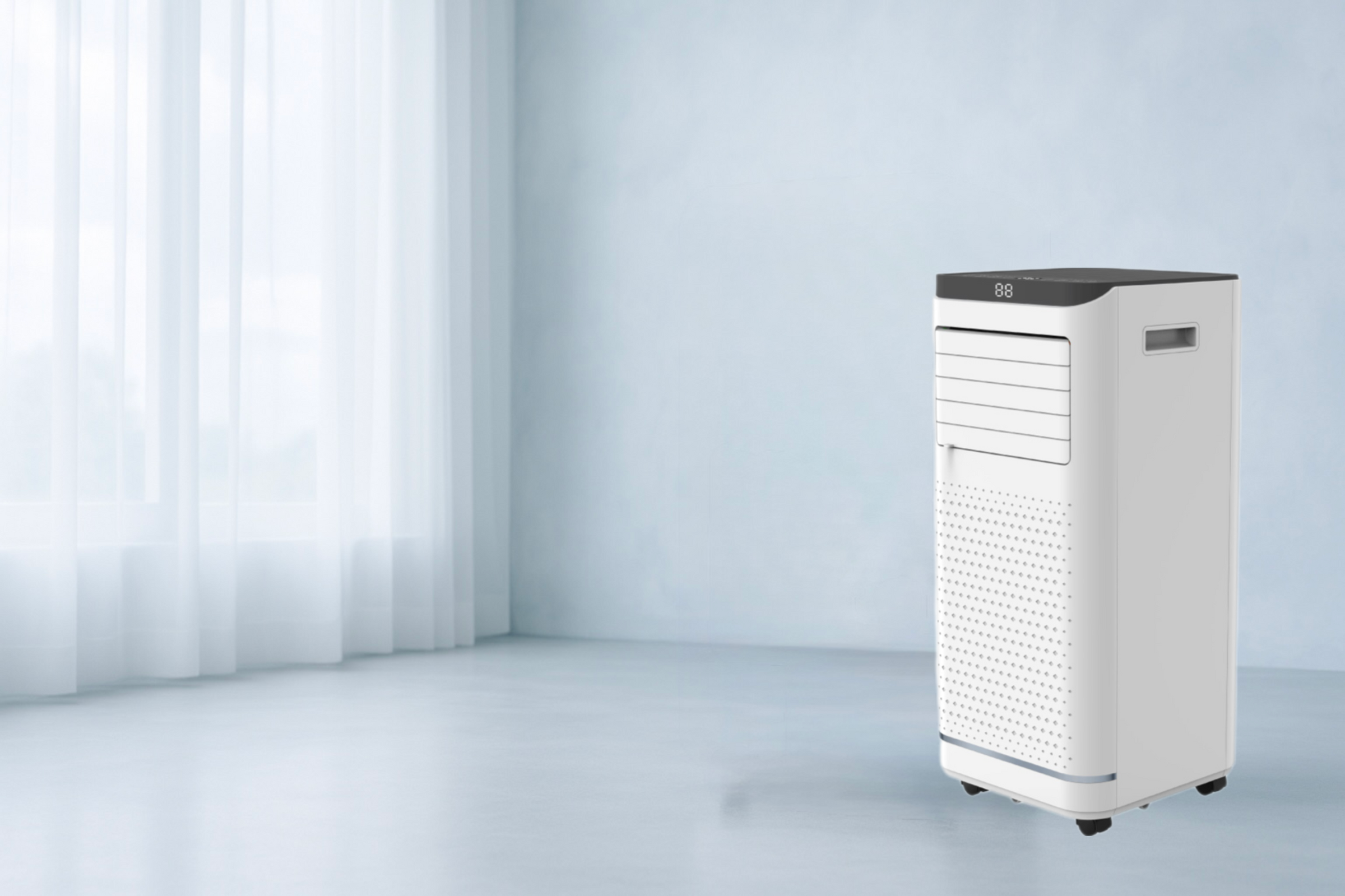 「移動式エアコン」工事不要で簡単に移動できるスポットクーラーです。